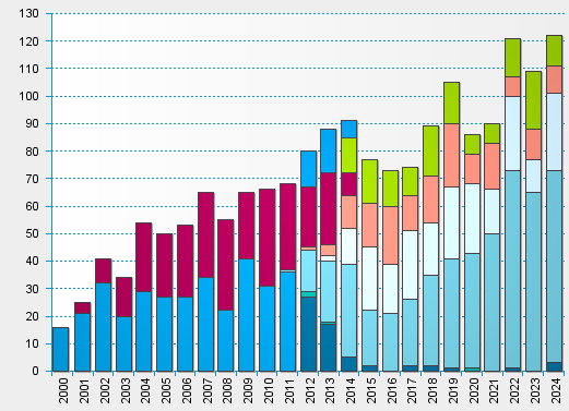 Lung transplants (deceased donor) in Netherlands, by year, by urgency